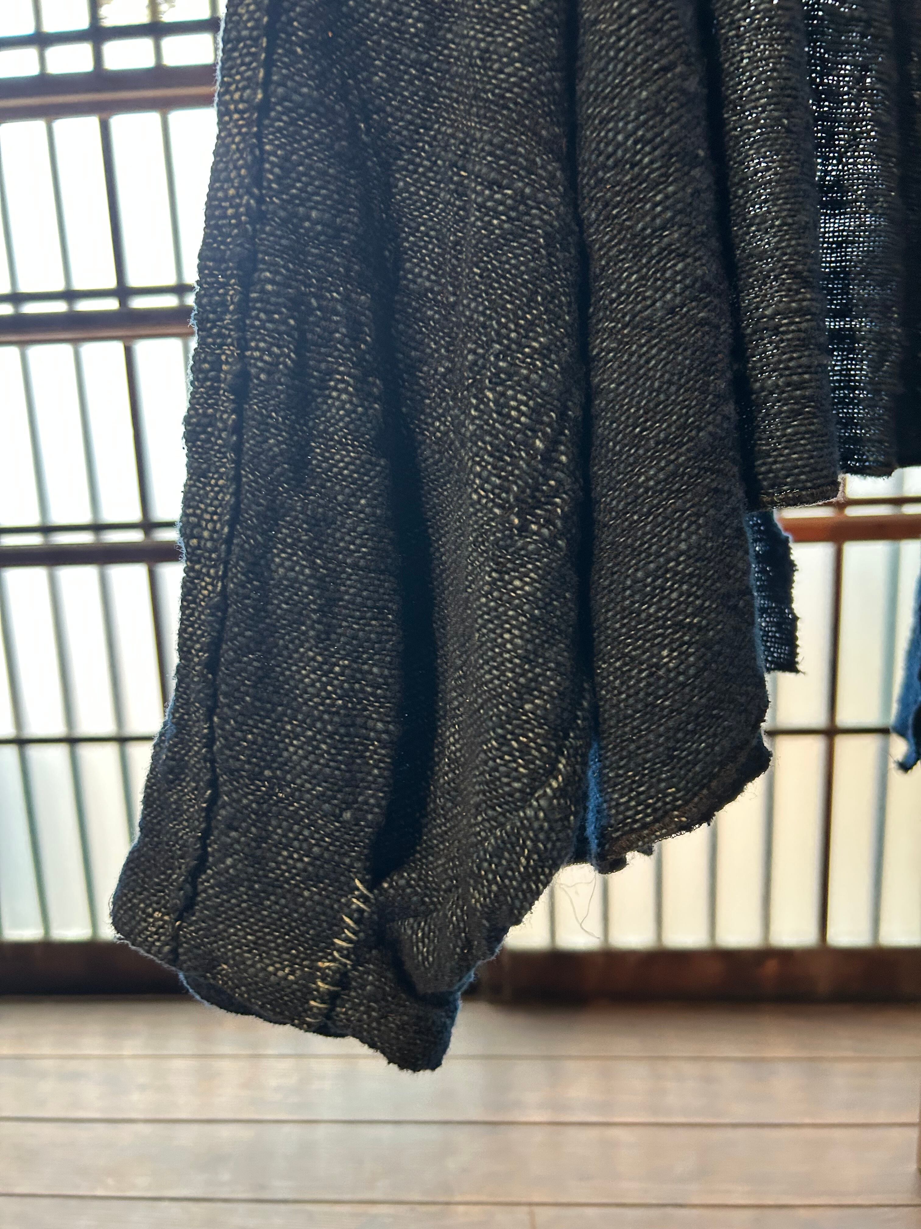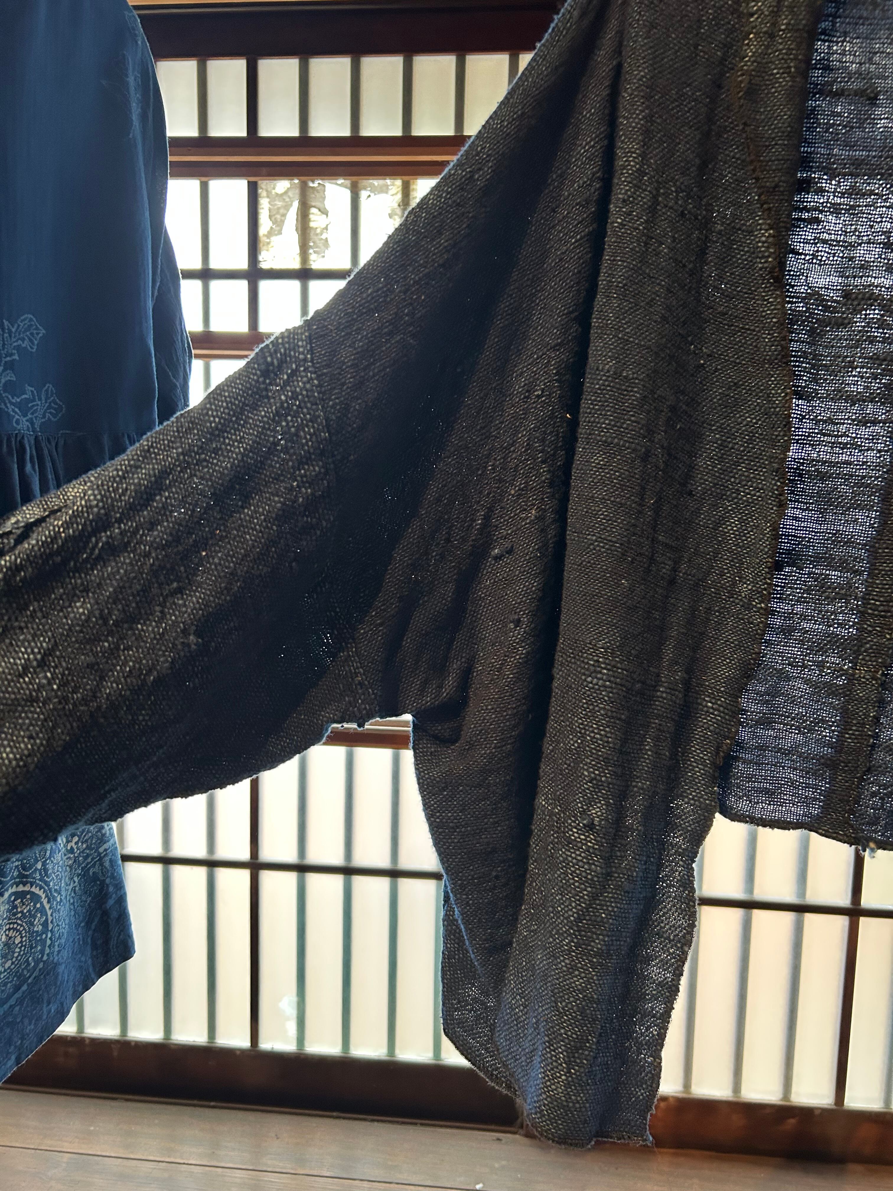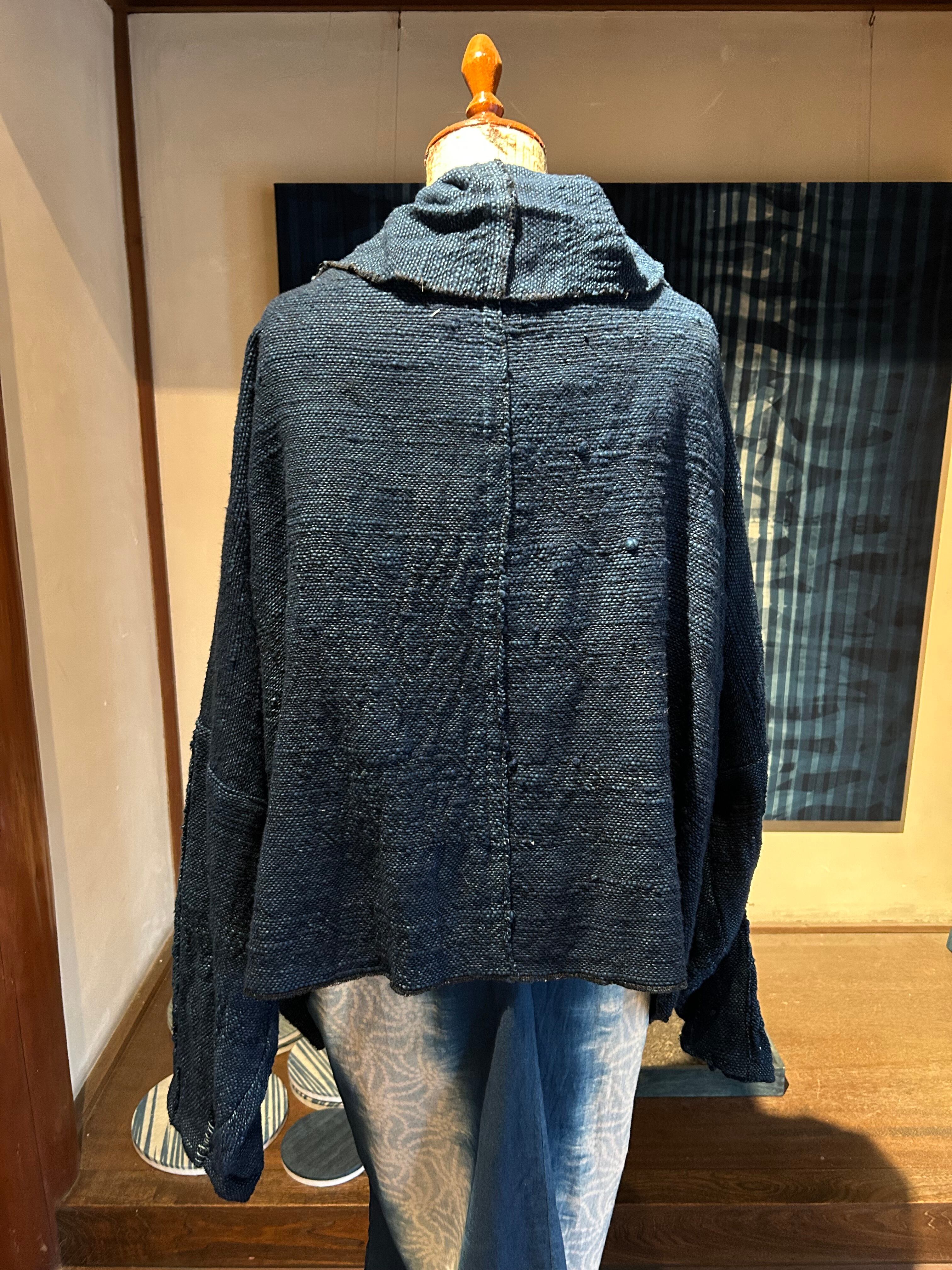 The jacket is tailored from the fabric and dyed dark blue with indigo dye.
