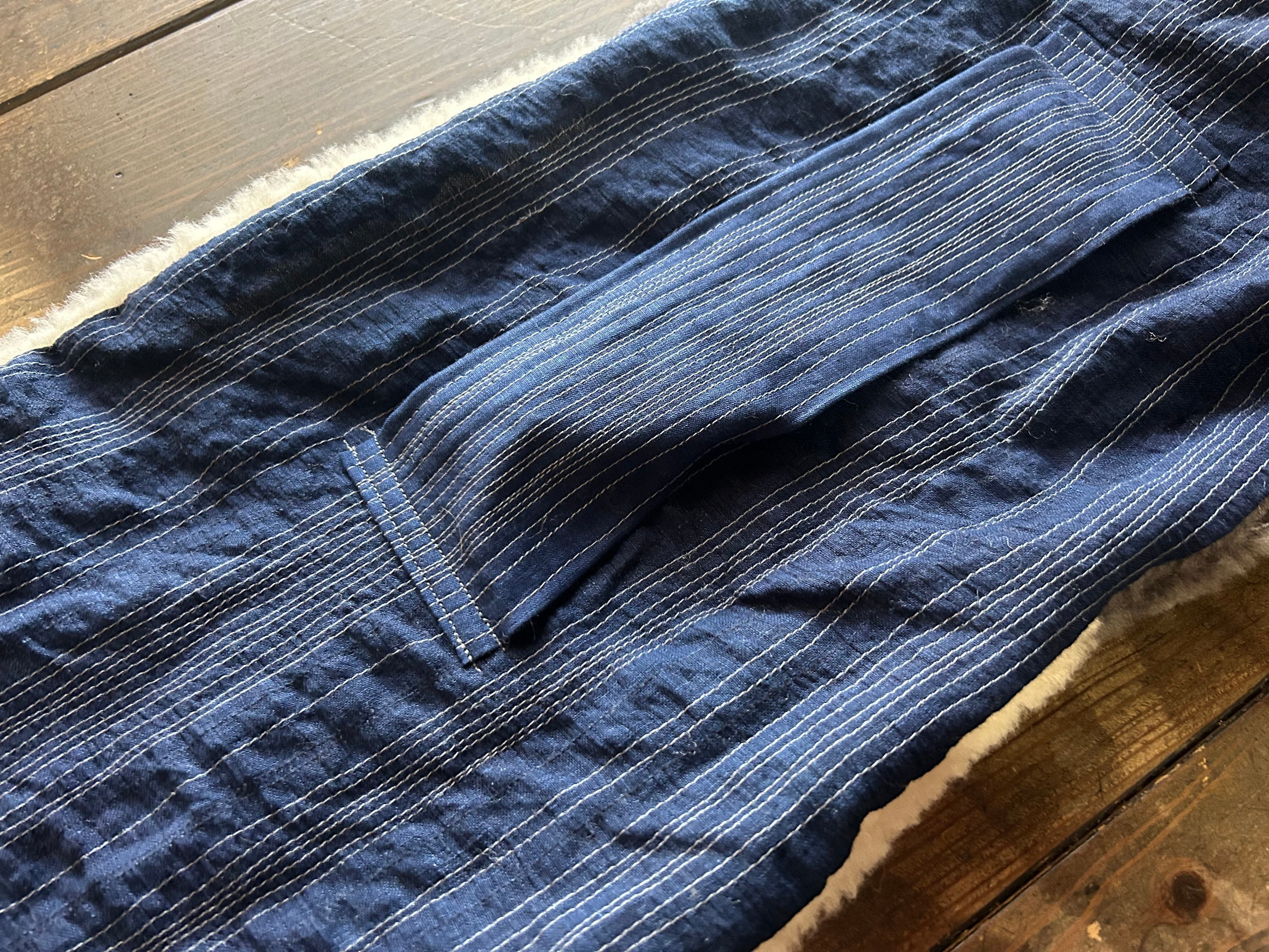 表生地は、リネンの生地にミシンステッチを施した生地を使用しています。