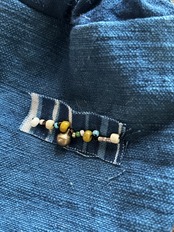 古い帯芯、古布更紗、アンティークビーズ、ガラスビーズ、真鍮の鈴、